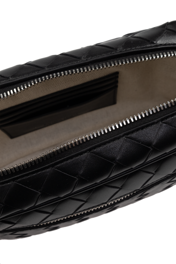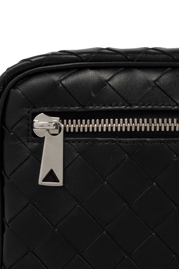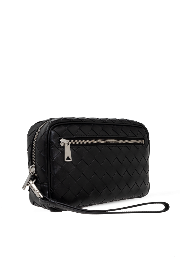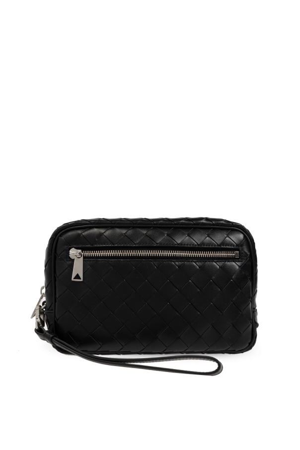 Introducing the quintessence of luxury and craftsmanship: the Black Woven Leather Handbag by Bottega Veneta. This exquisite piece is a testament to the brand\'s commitment to superior quality and understated elegance. Crafted from the finest calfskin leather, its outer layer boasts a meticulously woven Intrecciato pattern, a hallmark of the brand\'s sophisticated aesthetic. The leather\'s suppleness, paired with its durability, makes this handbag a paragon of luxury accessories. The handbag\'s sleek, rectangular silhouette is complemented by a contrasting cream canvas interior, offering a spacious compartment along with three card slots for optimal organization. Its compact yet functional design ensures that essentials like your phone, wallet, and keys are carried in style. A top zip closure with a metal zipper, adorned with a discrete brand-signature shape, secures your belongings while adding a touch of elegance. Detachable handles offer versatility in carrying, making this handbag a perfect companion for both day and night. The absence of additional interior pockets emphasizes its functionality for carrying larger items without compromising on style. Why Choose This Product? Handcrafted from premium calfskin leather with a luxurious woven Intrecciato design. Secure and stylish metal zip closure with a distinctive brand-signature puller. Practical and elegant with a spacious interior, including a zippered pocket and three card slots. Versatile carrying options with a detachable handle. Eminently suitable for the discerning individual who appreciates the confluence of luxury, functionality, and minimalist design.