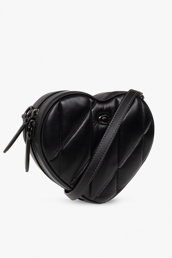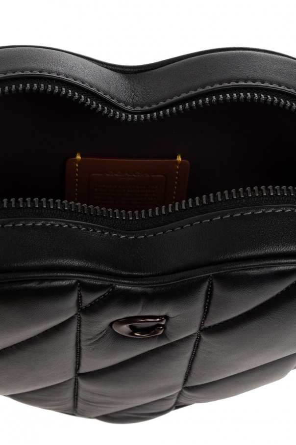 Black ‘Heart’ quilted shoulder bag from Coach. Crafted from leather, this model fastens with a two-way zip and is decorated with a metal monogram appliqué and the brand’s signature logo-embossed charm. It is complete with a detachable and adjustable shoulder straps, dark silver-tone metal hardware and one internal compartment with one card slot.