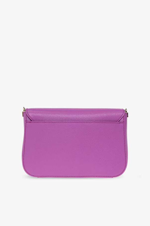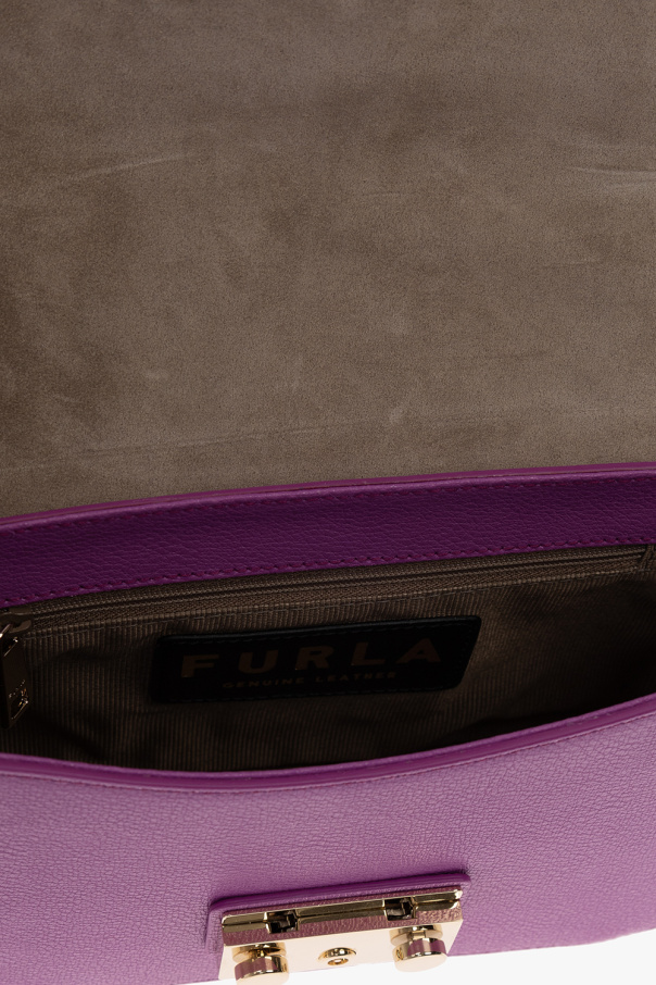 Purple ‘Metropolis’ shoulder bag from Furla. Crafted from leather, this design secures with a branded snap and features a back slip pocket, a detachable and adjustable shoulder strap with a logo in grey and purple, gold-tone metal hardware and one internal compartment with a zip pocket.