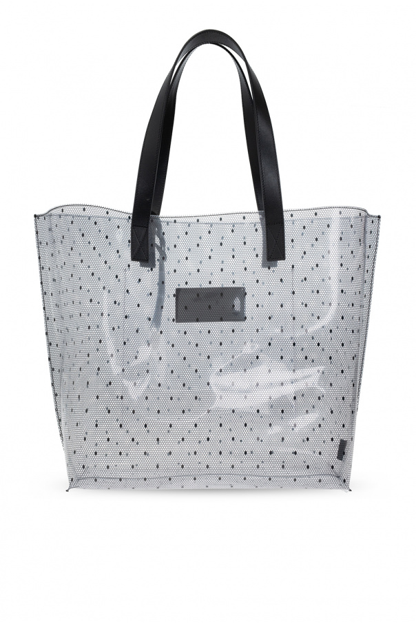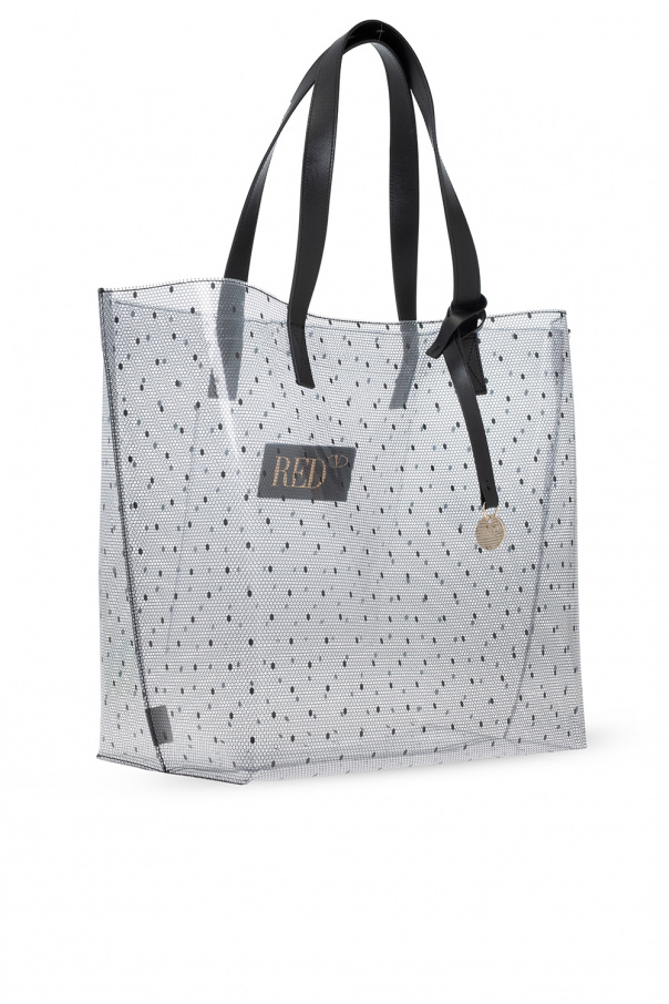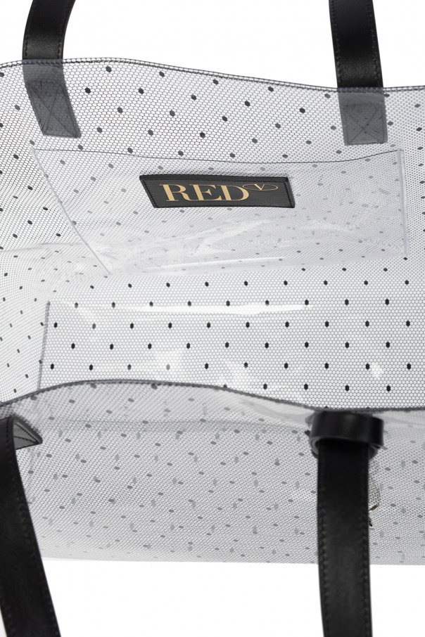 Transparent \'Joy2Go\' shopper bag from Red Valentino. Embellished with the brand\'s signature \'Point d\'Esprit\' print, this design features black leather trims, two half-round straps and one internal compartment with a slip pocket.