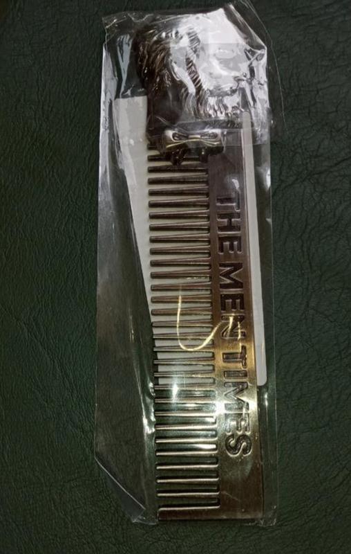 Металлический гребень – стильный дизайнерский аксессуар для настоящих мужчин. Оригинальный слепок солидного господина в профиль, крепкий металлический корпус, надпись «THE MEN TIMES» свидетельствуют об одном: пора уделить себе внимание, поправить прическу и бороду.