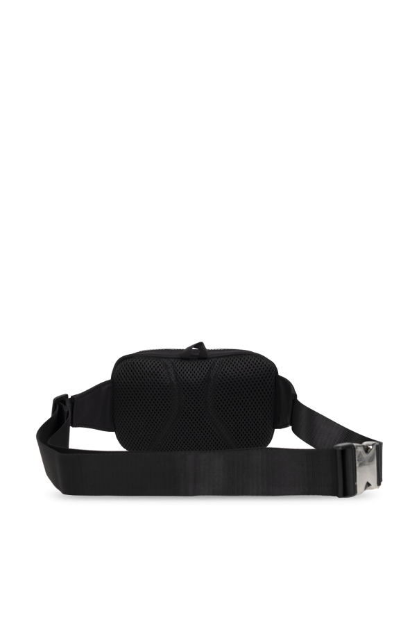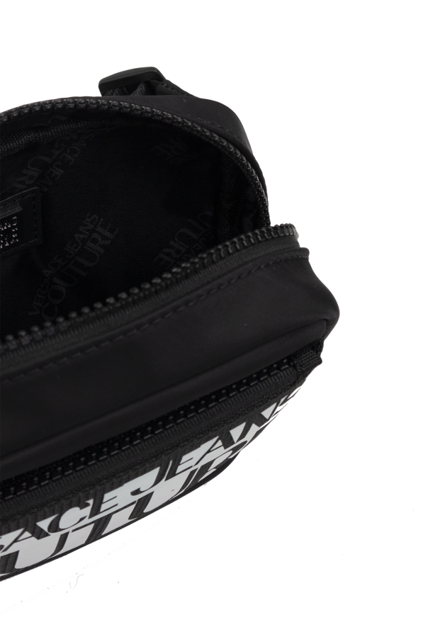 Black belt bag from Versace Jeans Couture. Fastened with a zip, this design features a holographic print, logo, zipped front pocket, adjustable belt, one internal compartment and silver-tone metal hardware.
