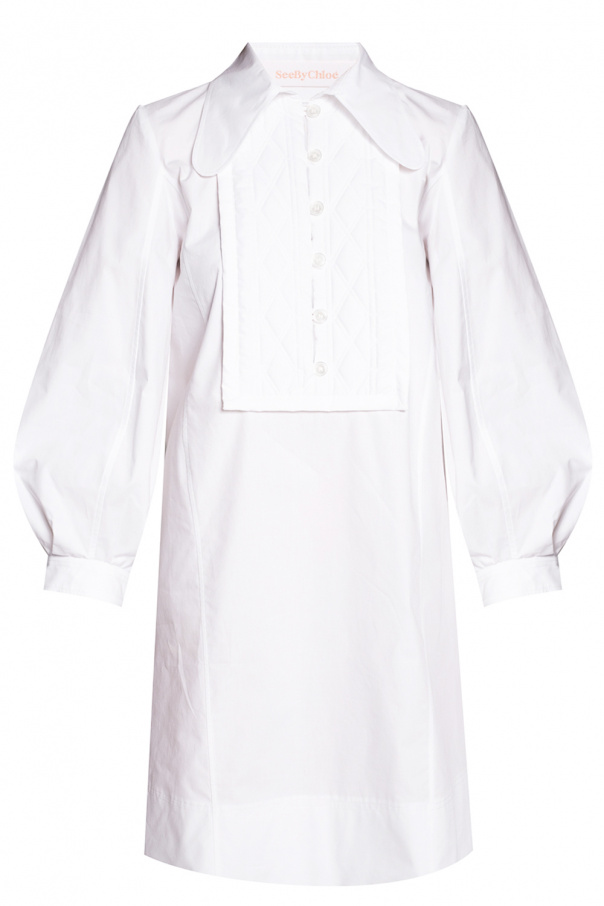 White collared dress from See By Chloé. Crafted from cotton, this style features button fastenings and long sleeves.