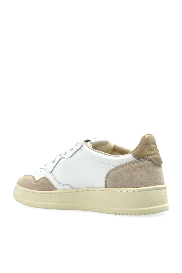 Introducing the Medalist Low sneakers, a paragon of sophistication from the exclusive Autry collection. These athletic shoes exude an understated elegance through their pristine white hue, subtly accented with beige on the toe and heel. Crafted with a luxurious blend of leather and suede, they impart a chic retro style that is both timeless and modern. The sneakers feature a colorful brand detail on the side, complete with the iconic \"Autry\" name and flag, while the cream-toned sole offers a striking contrast to the white body. The low-top design, enhanced with front perforations, ensures superior ventilation and comfort. Emblazoned with logos on the tongue and heel, these sneakers epitomize Autry\'s legacy of quality and style. Founded by Jim Autry in 1982, this illustrious brand has been synonymous with excellence, offering footwear that is as functional as it is fashionable. Perfect for casual ensembles, these sneakers seamlessly blend luxury with everyday wear. Why Choose This Product? Exquisite combination of leather and suede for a retro aesthetic. Distinctive brand detailing and logo placement for a mark of authenticity. Perforated design for enhanced breathability and comfort. Contrasting cream sole adds a touch of elegance to the overall look. Revitalized iconic style from a historical brand rooted in American heritage.