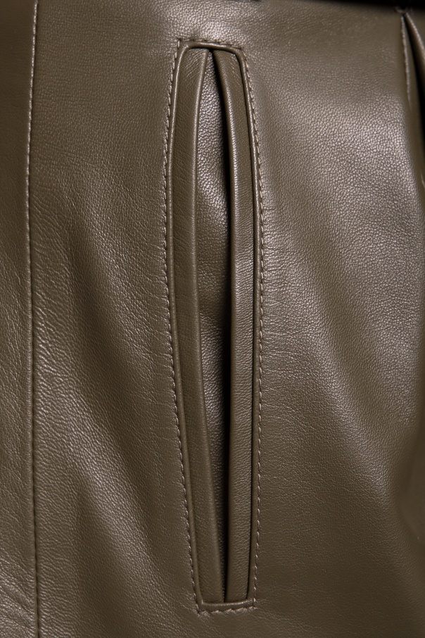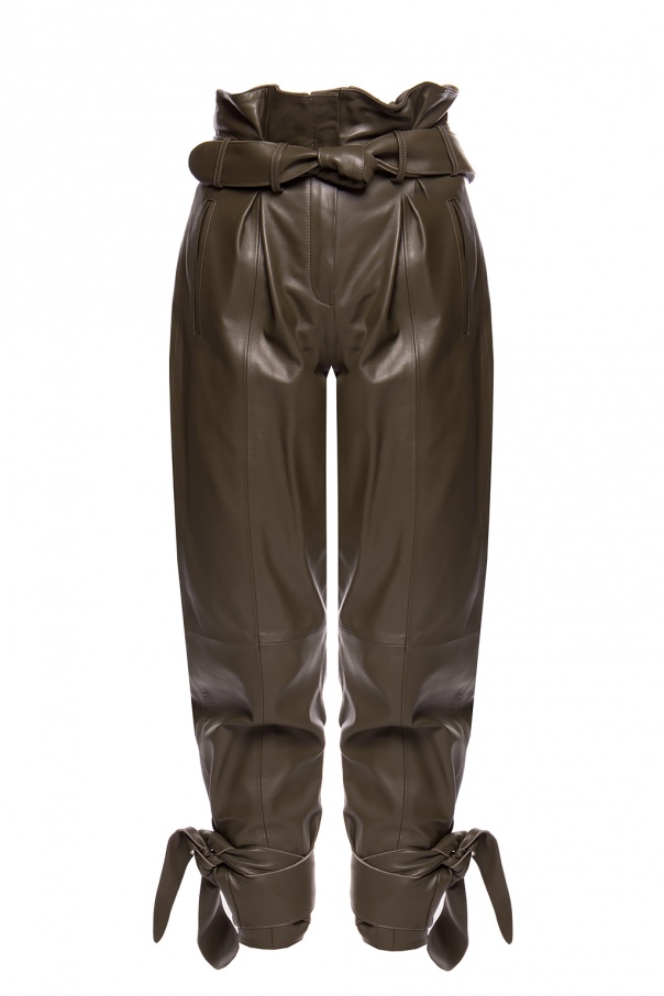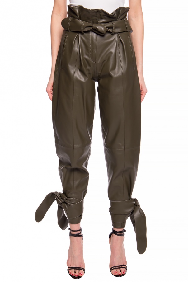 Green high-waisted loose-fitting trousers from The Attico. Made of lamb leather. Zip, button and tie fastening. Darts on the front and at the back. Two side pockets. Decorative tie fastening at the legs.