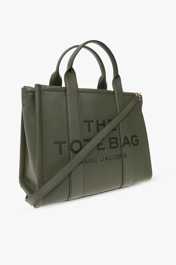 Dark green ‘The Tote Medium’ shopper bag from Marc Jacobs. Made of grained leather, this model features a zip fastening, embossed logo on the front, patch at the back, two half-round handles, detachable, adjustable shoulder strap and gold-tone metal hardware. It has one internal compartment with one zip pocket and two slip pockets.