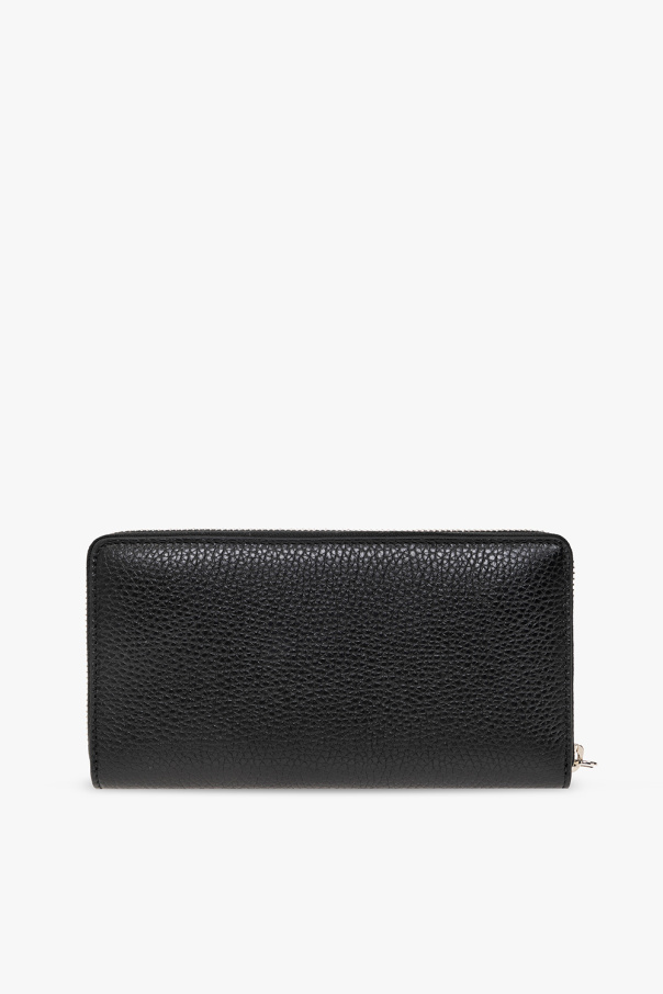 Black wallet from Gucci. Made of grained goat leather, this design features a zip fastening, logo hardware on the front, silver-tone metal elements and three compartments, one zip pocket and twelve card slots inside.