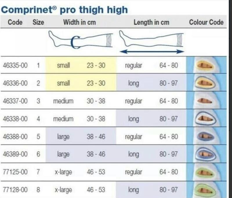 Панчохи компресійні Comprinet Pro 3 розмір білі В хорошому стані Довжина 68см майже в пах Панчохи проти емболії для профілактики тромбозу глибоких вен (ТГВ) Панчохи Comprinet Pro для захисту від емболії застосовують безперервно зменшується градієнт тиску від дистального до проксимального у відповідності з медичними рівнями стиснення. Анатомічна форма панчоху Comprinet Pro Anti Embolism в поєднанні з високою розтяжністю гарантує, що Comprinet pro підходить для широкого спектра форм і розмірів ніг, зберігаючи при цьому профіль тиску. Профілактика тромбозу у хірургічних пацієнтів та пацієнтів, яким потрібні тривалі періоди іммобілізації. Даю в кінці розмірну таблицю
