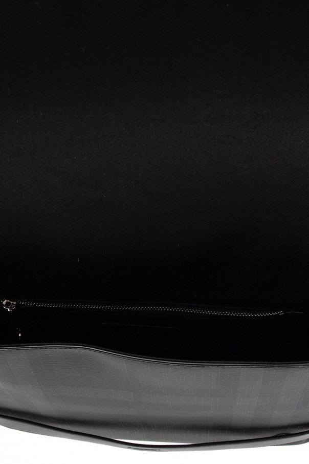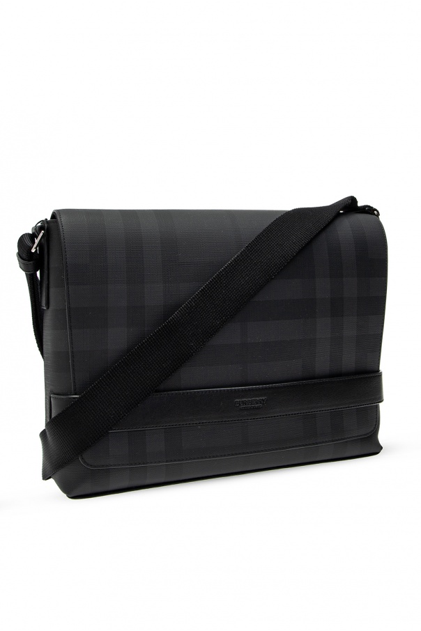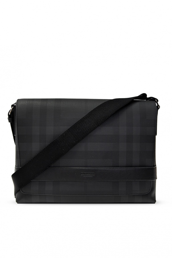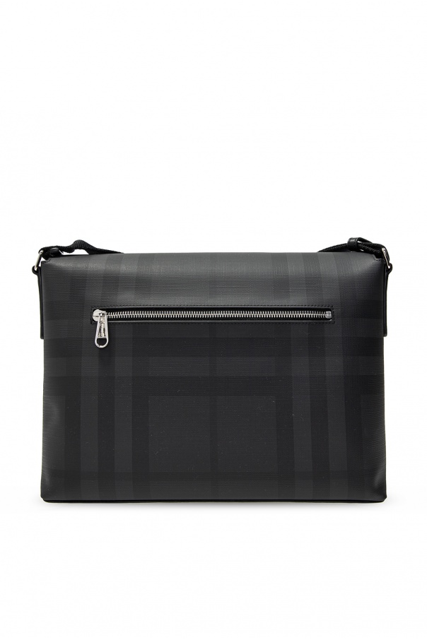 Grey and black shoulder bag from Burberry. Fastened with a magnetic closure, this item features a logo-embossed strap on the front, a zip pocket at the back, an adjustable shoulder strap and one internal compartment with one zip pocket.