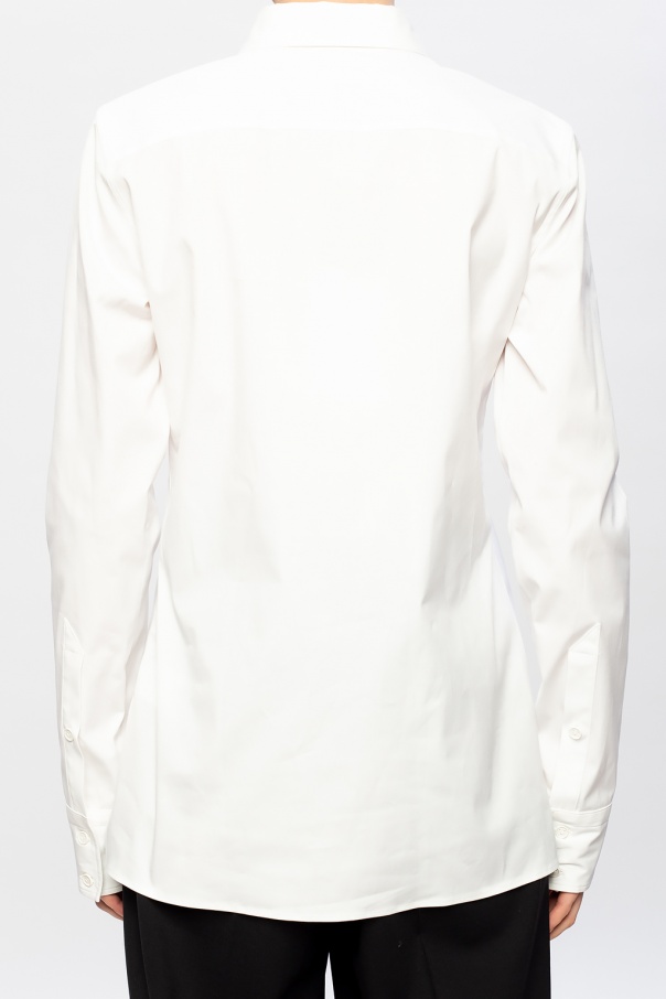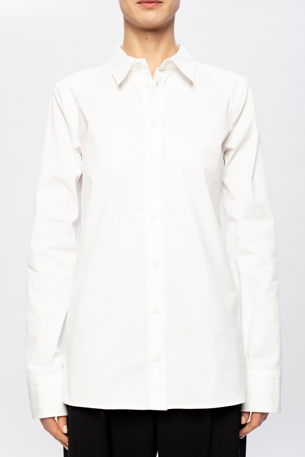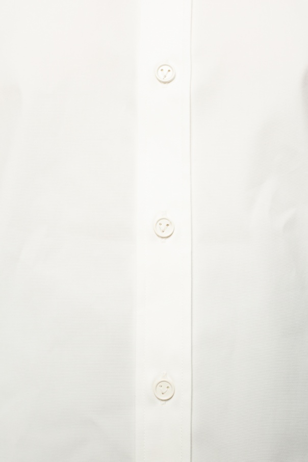 White shirt from Bottega Veneta. Crafted from stretchy crepe cotton jersey, this garment is complete with button fastening and button-fastened cuffs.
