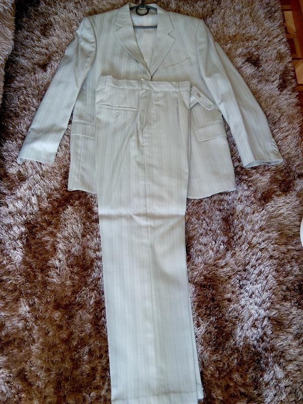 Мужской костюм. Цвет шампань в полоску. Очень дорогой. Стильный, делового стиля. Классика. Один нюанс из-за которого я снизила цену маленькие следы от булавок. Может это не особо недостаток, ноя все описываю правдиво, что бы акцентировать внимание покупателей. Я с уважением отношусь к вещам и товару. Все замеры по запросу. Обращайтесь.