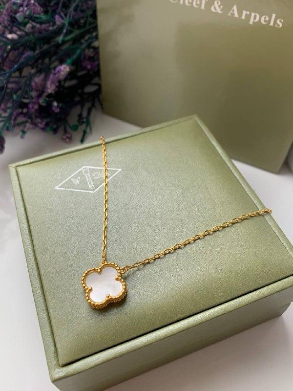 Подвеска Клевер - натуральный перламутр, лимонное золото (покрытие)