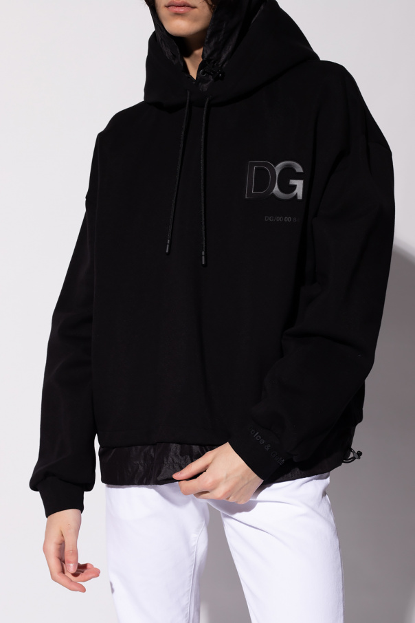 Black hooded sweatshirt from Dolce & Gabbana. Made of cotton jersey, this hoodie features a tactile logo appliqué, long sleeves with elasticated cuffs and a drawcord-adjustable hood and hem.