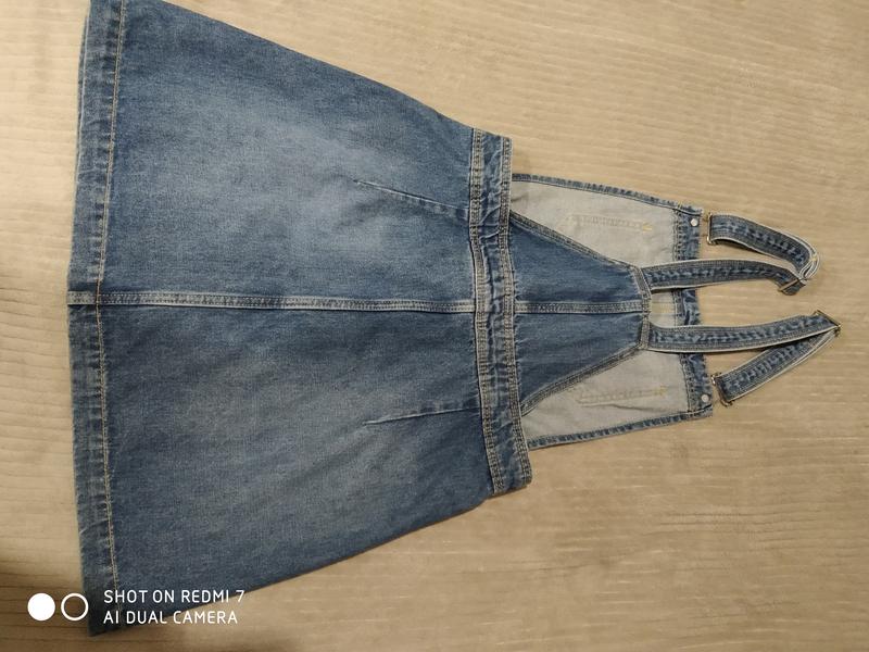 Джинсовый сарафан из 100% хлопка,ширина пояса 37см, длина юбки от пояса 40см.
