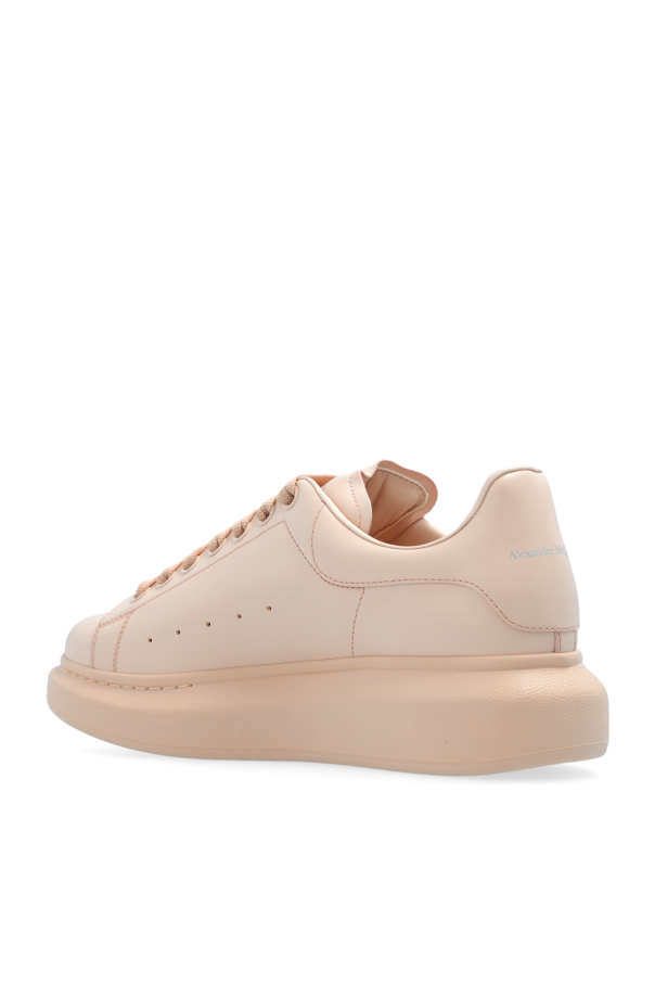 Pink sneakers from Alexander McQueen. Made of leather, this lace-up model sits on a pink rubber sole and showcases a silver-tone logo printed on the tongue and back and perforations on the sides.