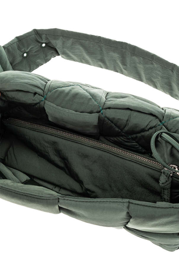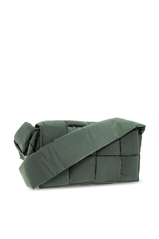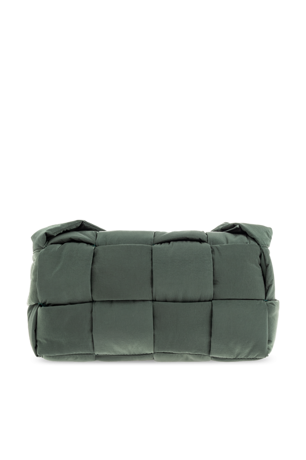 Dark green ‘Cassette Medium’ shoulder bag from Bottega Veneta. Accentuated with the brand\'s signature Intreccio weave, this design secures with a magnetic fastener on the flap and features an adjustable shoulder strap, silver-tone metal hardware and one internal compartment with a removable zip pouch.