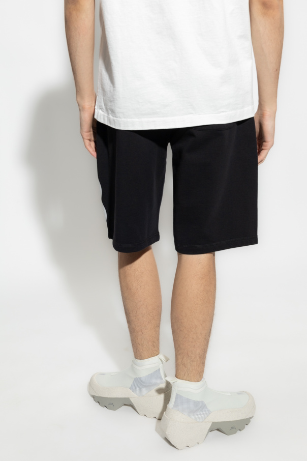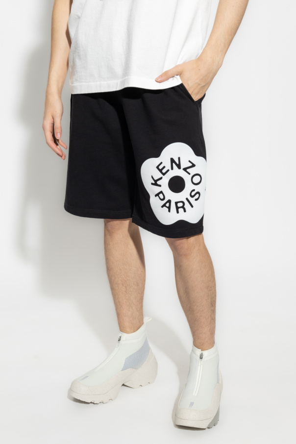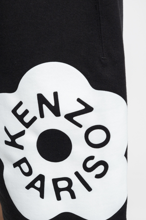 Black sweat shorts from Kenzo. Made of cotton. Fastened with drawstrings, this pair features a white logo print, two front pockets and one back pocket.