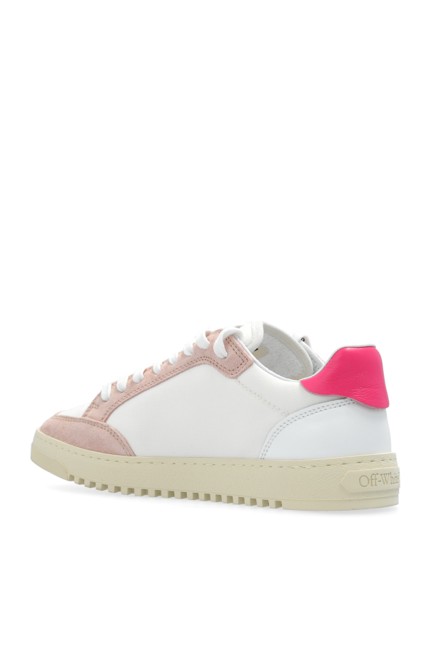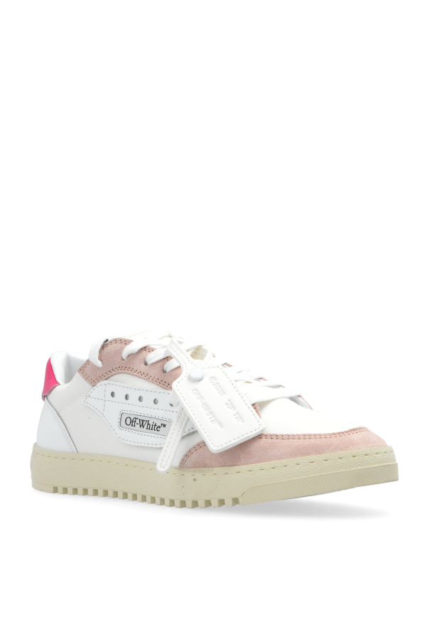 Introducing the 5.0 Off Court sneakers from the exclusive collection by Off-White. These sneakers epitomize the perfect blend of modern design and functionality, embodying the essence of Off-White\'s avant-garde aesthetic. Crafted with a meticulous attention to detail, these shoes feature a classic low-top profile, executed in pristine white with striking pink suede accents. The luxurious combination of leather and suede not only enhances the visual appeal but also ensures durability and comfort. Distinctive details include the iconic \"Off-White™\" inscription on the side, a signature rectangular tag, and a robust rubber sole with a pronounced tread pattern. The reinforced heel, adorned with a vibrant pink element, adds a unique touch to this sophisticated design. Why Choose This Product? Exclusive design by Virgil Abloh\'s Off-White, renowned for its contemporary cultural influence and distinctive style. Premium materials: a combination of leather and suede for a luxurious feel. Unique branding elements, including the \"Off-White™\" logo and signature tag. Durable rubber sole with excellent grip, perfect for everyday wear. Reinforced heel with a striking pink accent for added style.