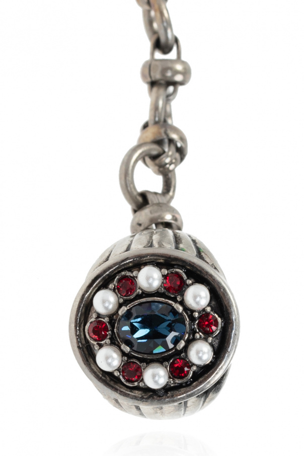 Silver-tone necklace from Dsquared2. Made of brass, this item showcases logo-embossed charms with a ring accentuated with white and red elements.