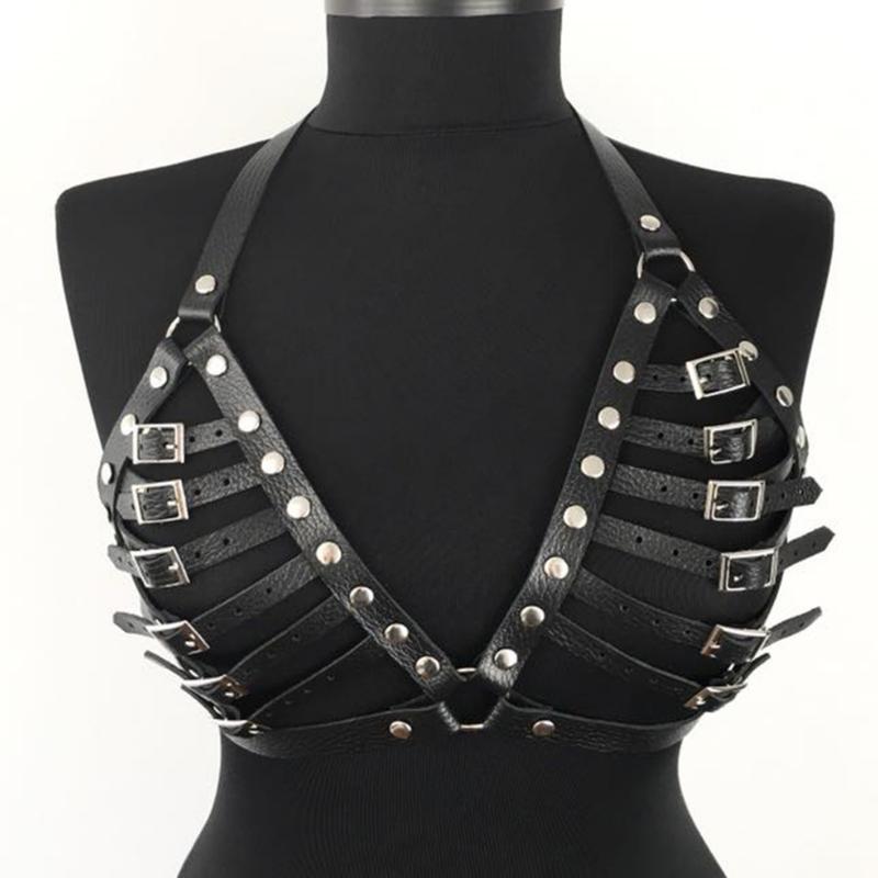 Портупея лиф с натуральной кожи декорирована ремешками по всей длине лифа. Они могут регулироваться на любой размер. Ширина кожаного ремешка составляет 1,5 см.