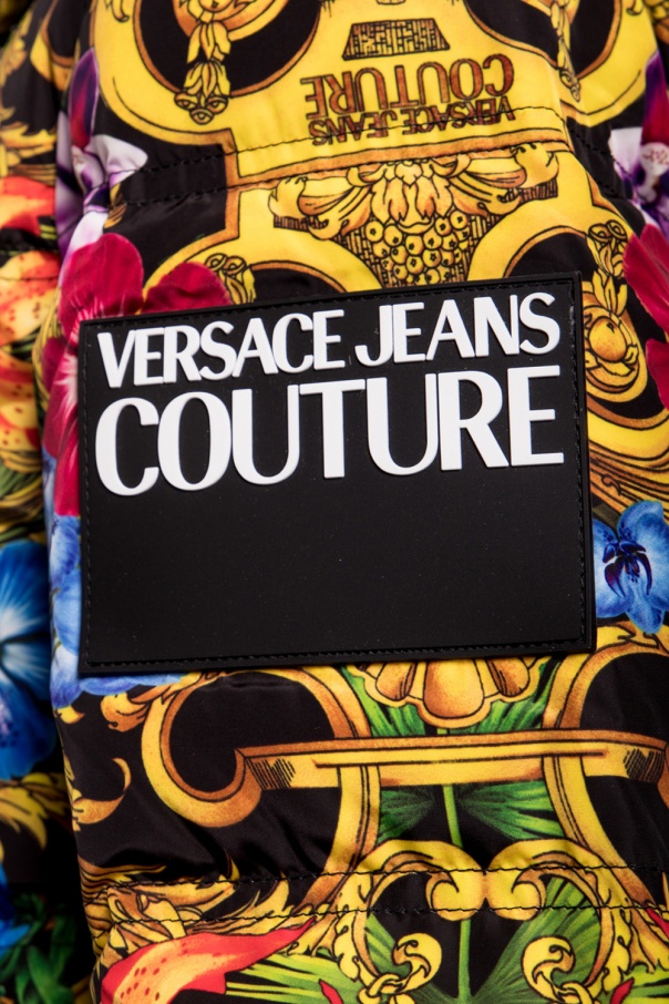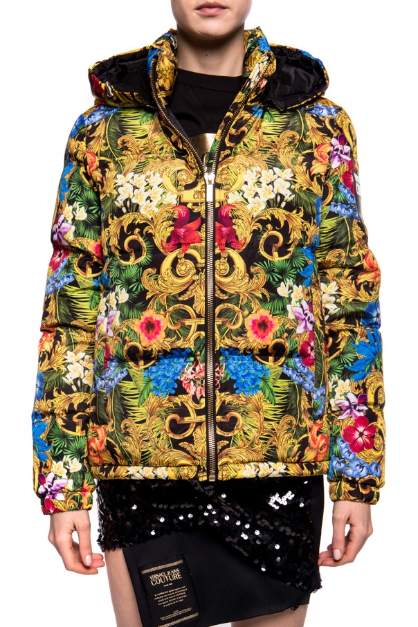 Colorful quilted jacket from Versace Jeans. Zip fastening. Drawstring bottom hem. Decorated with a colorful Baroque print. Detachable hood. Two zip pockets on the front.
