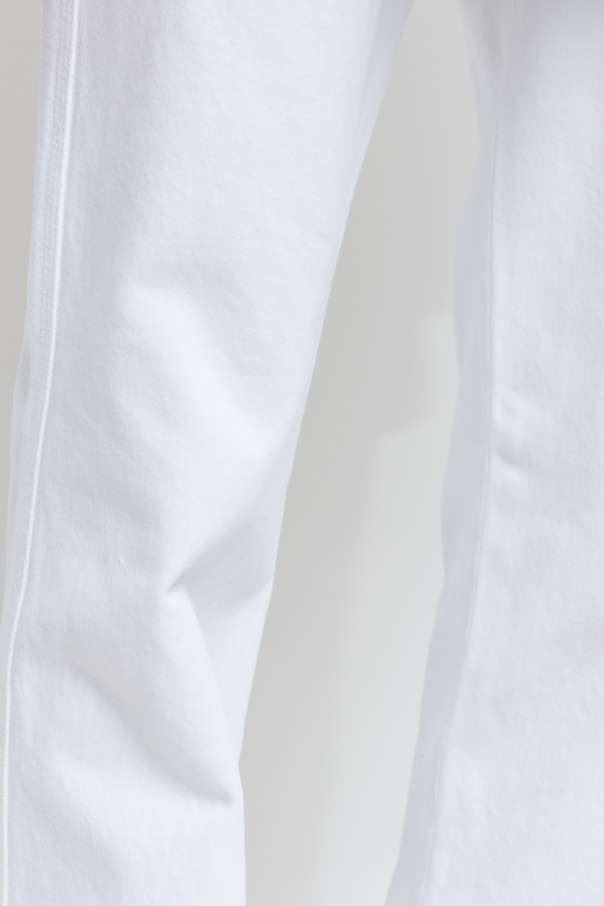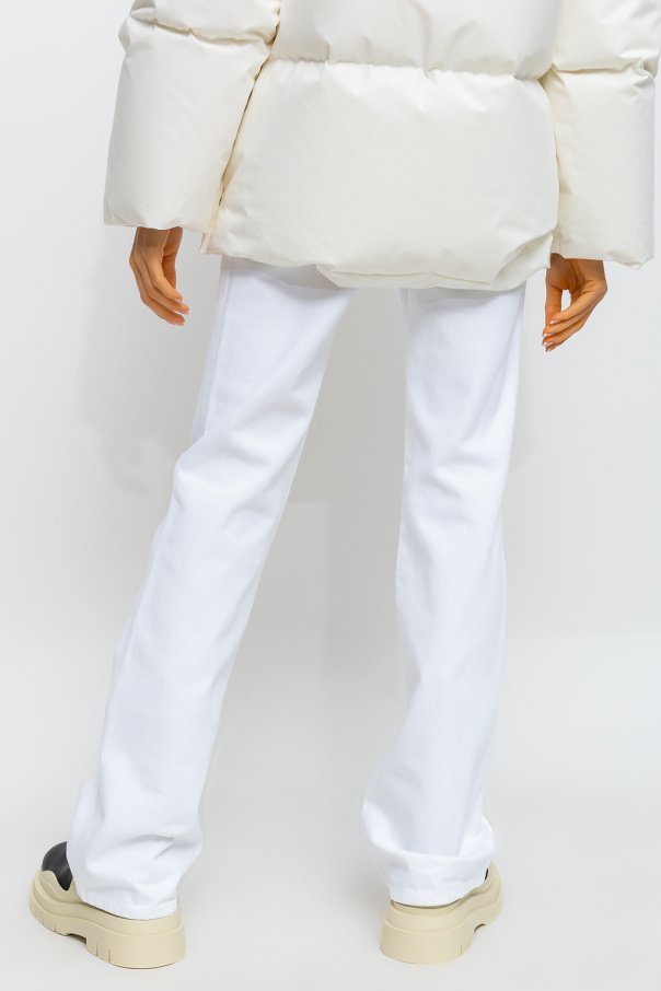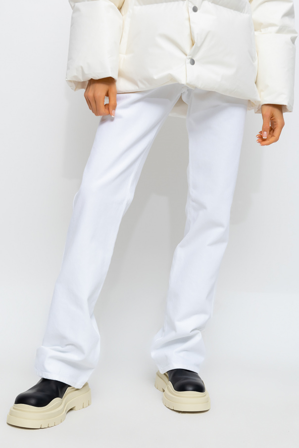 White jeans from Bottega Veneta. Falling with wide, flared legs, this pair features button fastenings and classic five pockets.