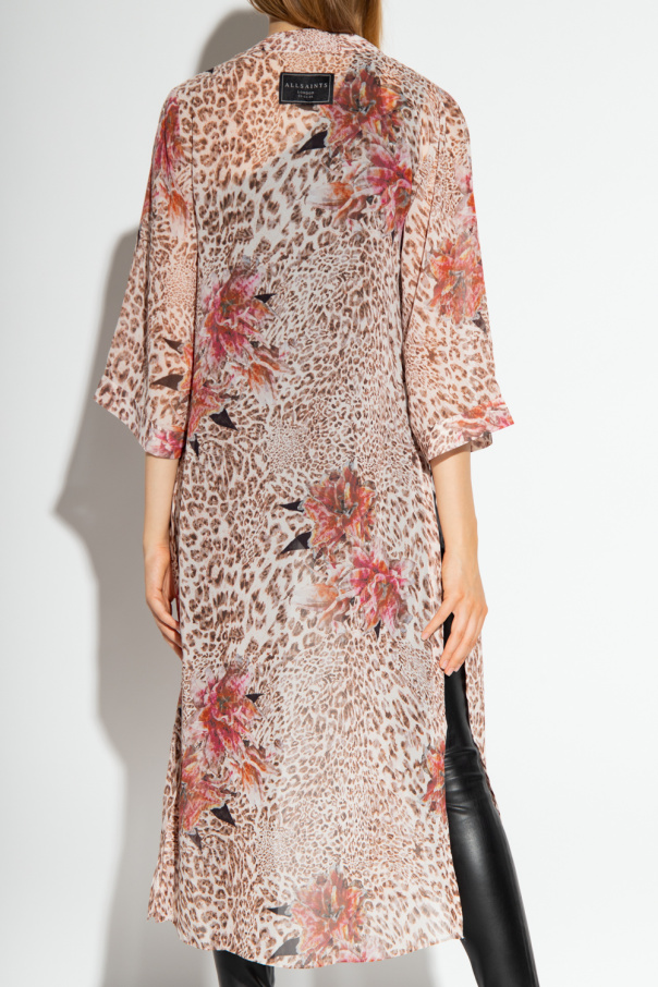 Multicolored ‘Carine’ kimono from AllSaints. This design features a logo patch at the back, 3/4 length sleeves and vents.