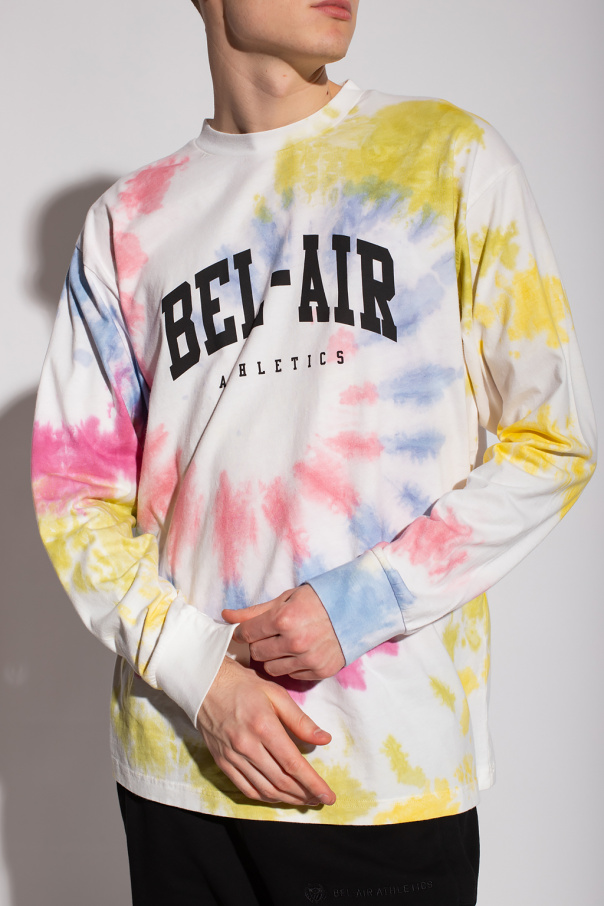 Multicoloured crewneck T-shirt from Bel Air Athletics. Crafted from tie-dyed cotton, this style showcases long sleeves, an elasticated collar and cuffs and a colourful graphic print with the brand\'s logo.