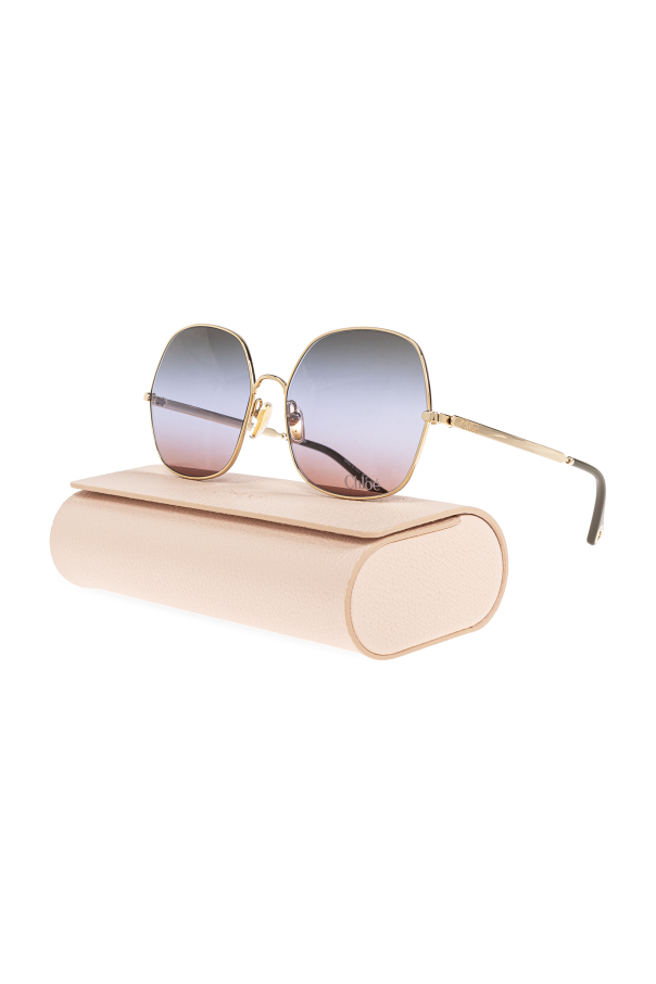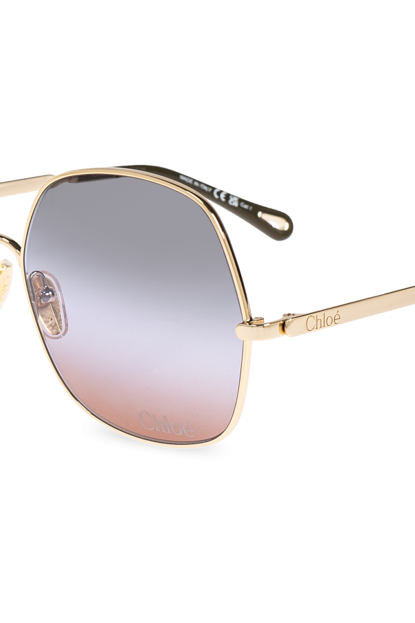 Introducing the Aly Sunglasses from the esteemed Chloé collection, a paragon of modern sophistication and timeless elegance. Crafted with precision, these sunglasses feature large, square lenses with subtly rounded edges, framed by slender, metal rims that exude a contemporary allure. The opulent gold frames accentuate the luxurious nature of this accessory, while the gradient lenses, transitioning from gray to pink, offer a unique and stylish touch. The designer\'s subtle logo embellishes the temples, marking this piece as a signature of exclusivity. Complemented by a refined, light-colored case, these sunglasses are as much a statement of fashion as they are of function. Crafted entirely from metal, they epitomize the perfect blend of durability and elegance. Why Choose This Product? Exquisite design with a modern twist Luxurious gold frames with gradient lenses Signature designer logo for exclusivity Includes an elegant case for added prestige