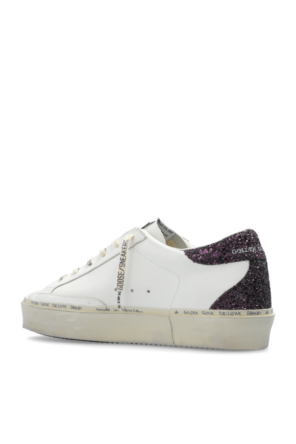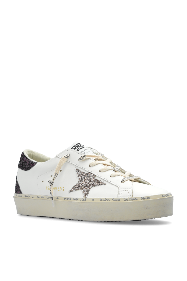 Introducing the ‘Super-star classic with spur’ sneakers by Golden Goose, a harmonious blend of luxury and sporty elegance. These exquisite sneakers feature a dominant white hue, meticulously crafted from premium leather and fabric. The low-profile silhouette is accentuated with traditional lace-up closure, ensuring a bespoke fit. The hallmark of these sneakers is the glittering star on the side, fashioned from a brocade material that injects an element of opulence. Complementing this is the distinctive spur at the heel, mirroring the star\'s glittering brocade, making a bold statement of luxury. The sneakers are adorned with characteristic brand inscriptions and decorative elements on the side panels, heel, and tongue, serving as a testament to their exclusive origin. The sole, crafted from rubber, offers a slight elevation at the heel for enhanced comfort, while its flat design ensures a seamless stride. The intentionally aged appearance lends the sneakers a unique vintage charm, setting them apart in the realm of haute couture. Why Purchase This Product? Exquisite blend of luxury and comfort with high-quality leather and fabric. Unique design featuring a glittering brocade star and spur, adding a touch of elegance. Exclusive brand elements and inscriptions highlight the distinctive pedigree. Vintage effect for an unparalleled style statement. Durable rubber sole with slight heel elevation for optimal comfort.