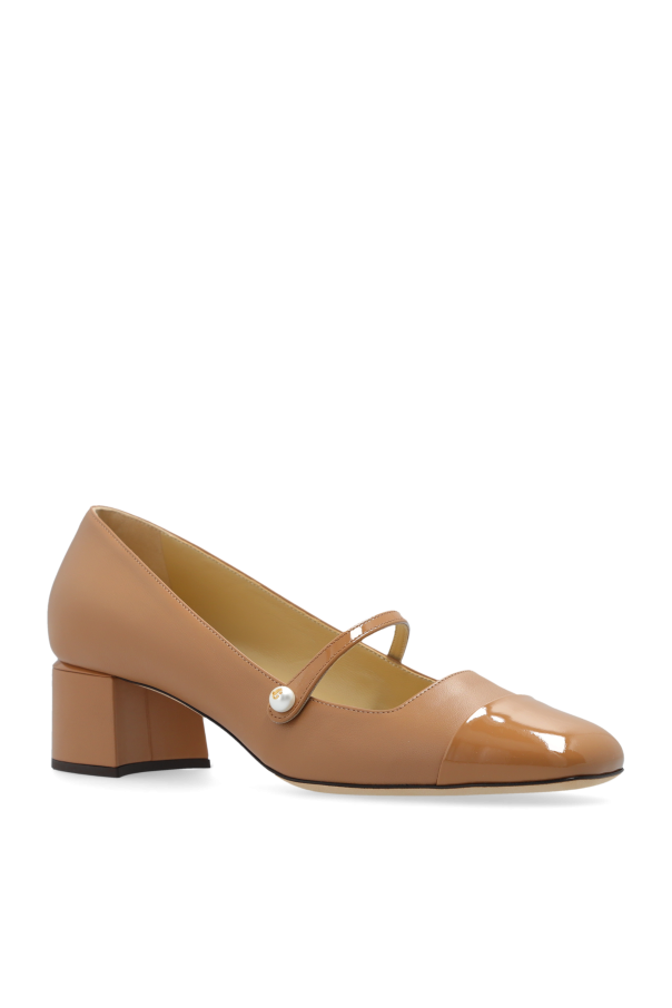 Introducing the \"Elisa\" heels by Jimmy Choo, a harmonious blend of classic sophistication and contemporary elegance. These beige heels are the epitome of grace, designed with a rounded toe and a low, wide heel that promises unparalleled comfort without sacrificing style. Crafted from premium leather, the shoes feature a polished, patent leather front that captures the light and the gaze of onlookers alike. The defining feature of the \"Elisa\" is its decorative strap that gracefully crosses the top of the foot, secured with an exquisite pearl-like buckle. This detail adds a touch of femininity and subtle allure. Delicate stitching outlines the shape of the shoe and reinforces its structure, while the inner sole is adorned with the designer\'s logo, affirming the authenticity and exclusive heritage of the Jimmy Choo brand. Designed under the \"BOYFRIEND\" collection, these heels boast a slightly masculine, classic design that has been masterfully tailored to suit the feminine aesthetic and comfort. Whether showcased on foot or through various perspectives in photographs, the \"Elisa\" heels radiate quality craftsmanship, balanced proportions, and an eye for detail. Why Purchase the \"Elisa\" Heels? Elegant design with a comfortable, low wide heel for all-day wear Luxurious, patent leather front and pearl-like buckle add sophistication Signature Jimmy Choo craftsmanship and quality Perfect blend of masculine classic and feminine elegance Embellished with the designer’s logo for authenticity verification
