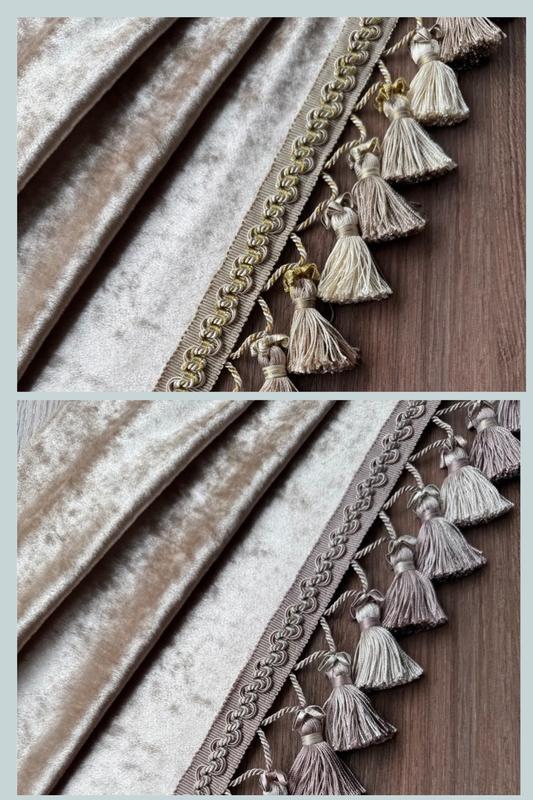 Бахрома для штор та гардин в класичному стилі. В наявності 2 кольора бежевий с додаванням золота та пильно рожевий ( Іспанія)