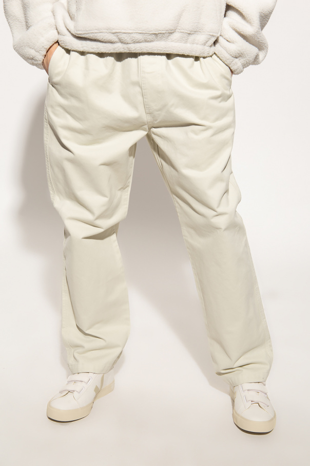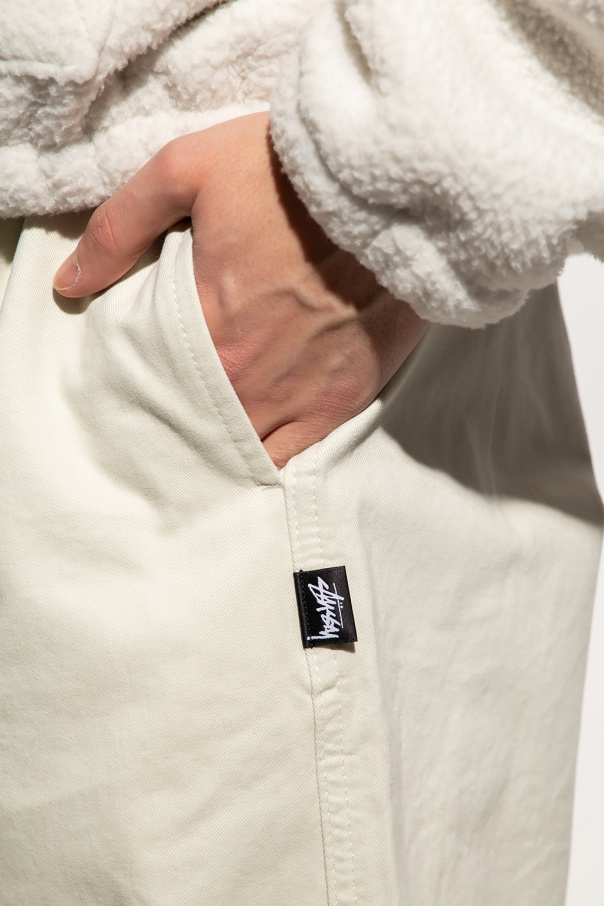 Cream trousers with a washed effect from Stussy. Made of cotton, this pair falls down with straight legs and is complete with a logo label, two front pockets and one back pocket.