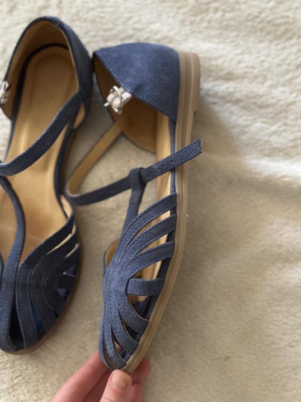 Сандалії джинсового кольору, зверху натуральний замш, всередині шкіра. Взувала 2 рази, майже нові. Розмір 37