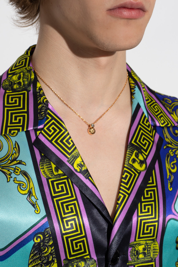 Gold-tone necklace from Versace. Embellished with a pendant with a glossy crystal and the brand\'s signature Medusa face, this item features an adjustable lobster clasp fastening.