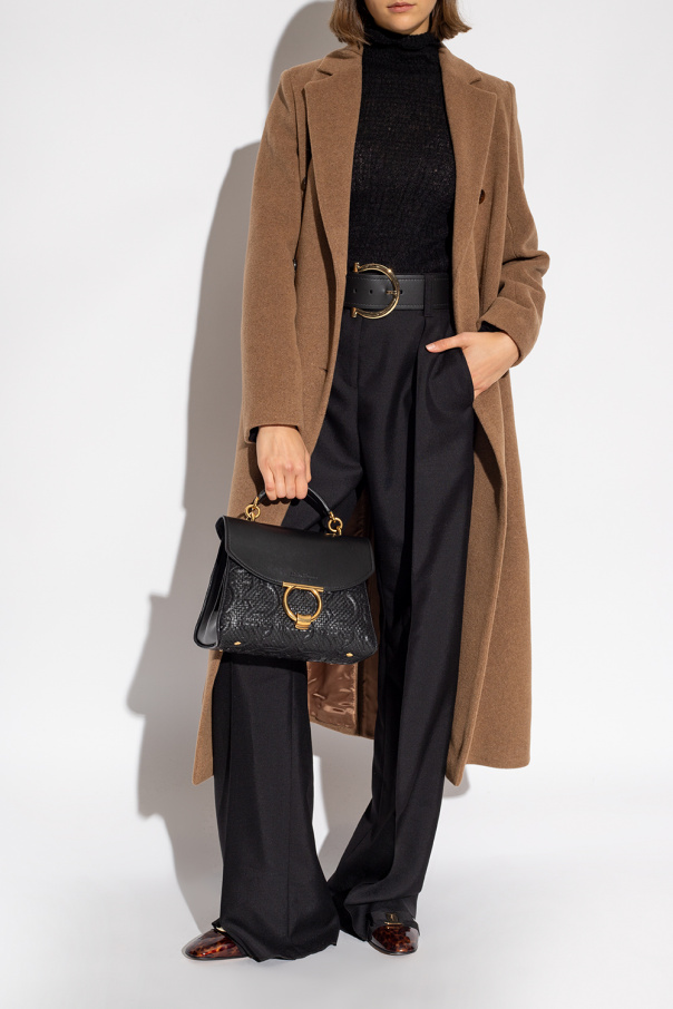 Brown and black ‘Laufer’ shoes from Salvatore Ferragamo. Crafted from leather, this model sits on a beige leather sole and showcases an animal motif and a logo application.