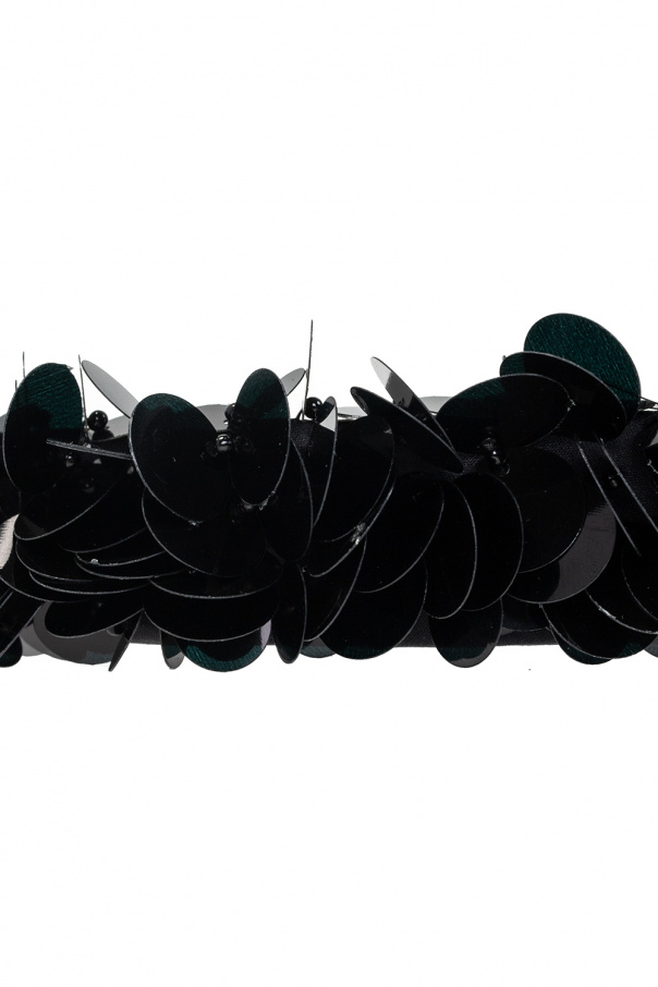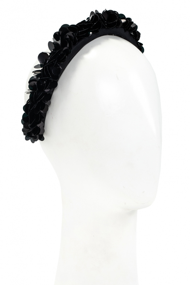 Black headband from Bonpoint Kids. This item is embroidered with glistening sequins.