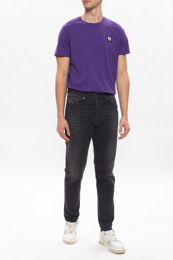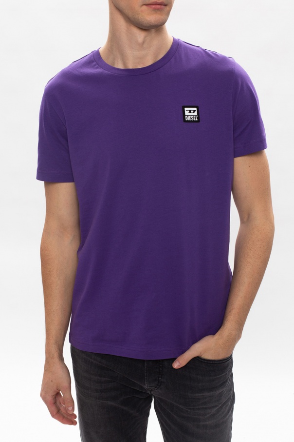 Purple crewneck T-shirt from Diesel. Crafted from cotton with a regular fit, this item features a white patch with the brand\'s logo.