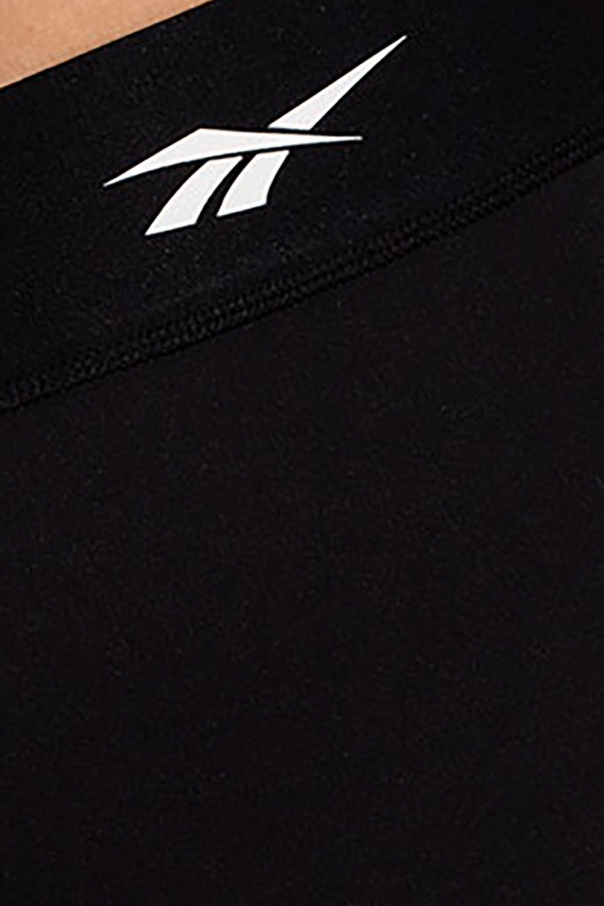 Black leggings from Reebok x Victoria Beckham. Made of Speedwick, a chlorine-resistant fabric with a water-repellent finish and UV 50+ factor, this pair is complete with an elastic waistband and white logo print.
