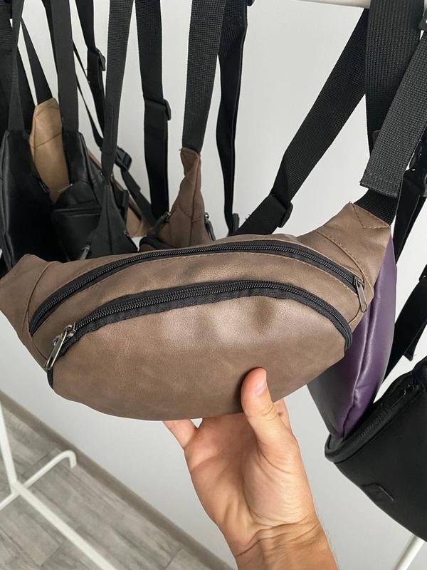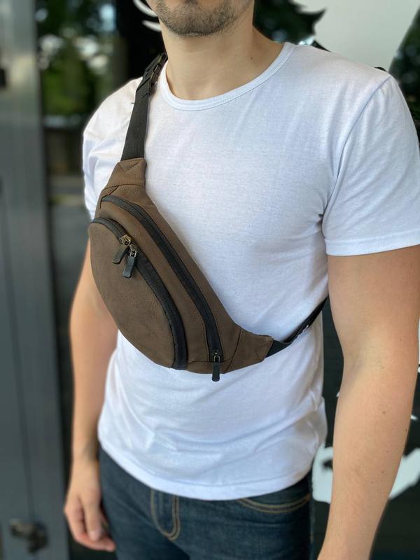 сумка выполнена из качественной эко-кожи длина пояса: максимальная 98 см, минимальная 66 см размеры: длина 33 см, высота 14,5 см, максимальная толщина 5 см имеет три кармана: один внутренний, два наружный (один на лицевой стороне и второй на задней стенке) ремень регулируется по длине качественная фурнитура по периметру сумку имеет плотные вставки, благодаря чему вещи менее подвержены воздействию внешних факторов внутри подкладка