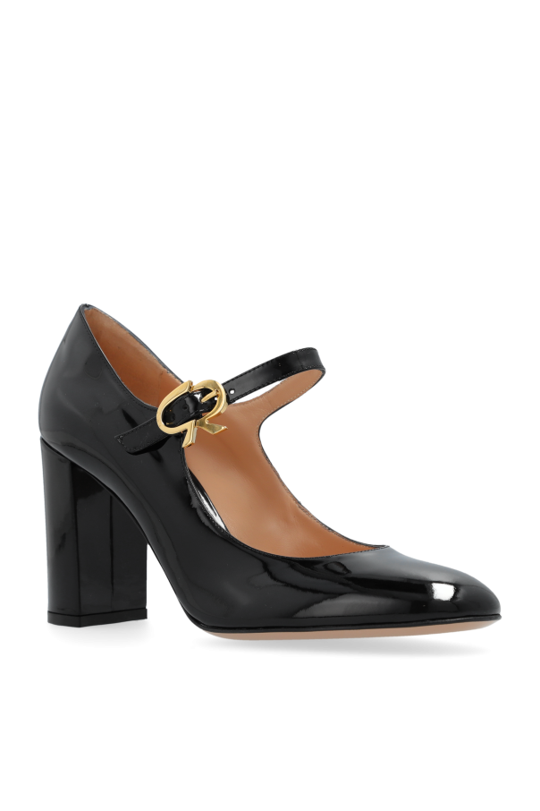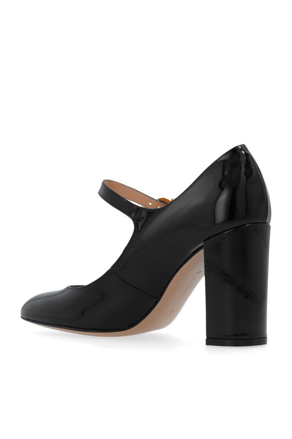 We present the exceptionally elegant \"Mary\" High Heels from the exclusive Gianvito Rossi collection. These black, patent leather high heels are the epitome of class and luxury, perfect for enhancing both formal and semi-formal outfits. The shoes feature a classic rounded toe and a stable, wide heel of medium to high height, ensuring comfort and elegance. A strap at the instep, fastened with a gold buckle, adds sophistication and additional support. Made from the highest quality patent leather, these shoes exude a luxurious shine. The interior is lined with natural leather, guaranteeing wearing comfort, while the subtle designer logo on the inner side of the shoe highlights its exclusivity. Why should you buy this product? Elegant, timeless design Made from luxurious materials Comfortable due to the leather lining Stable heel ensures wearing comfort Unique details like the gold buckle and designer logo