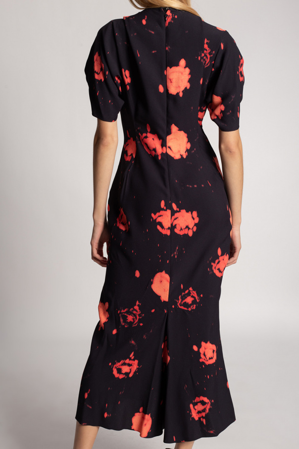 Black dress from Marni. Fastened at the back with a zip and hook, this short sleeve design features a round neck and ruched details.