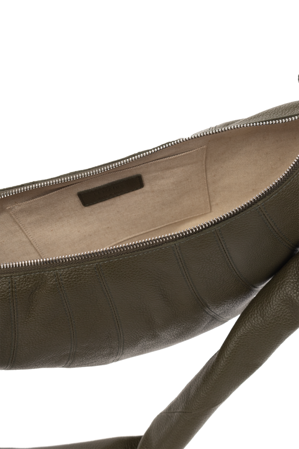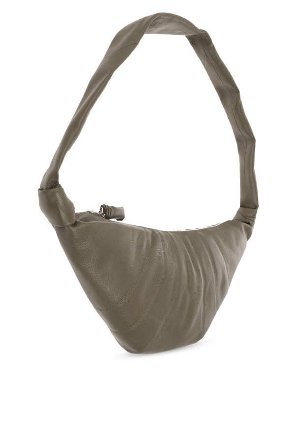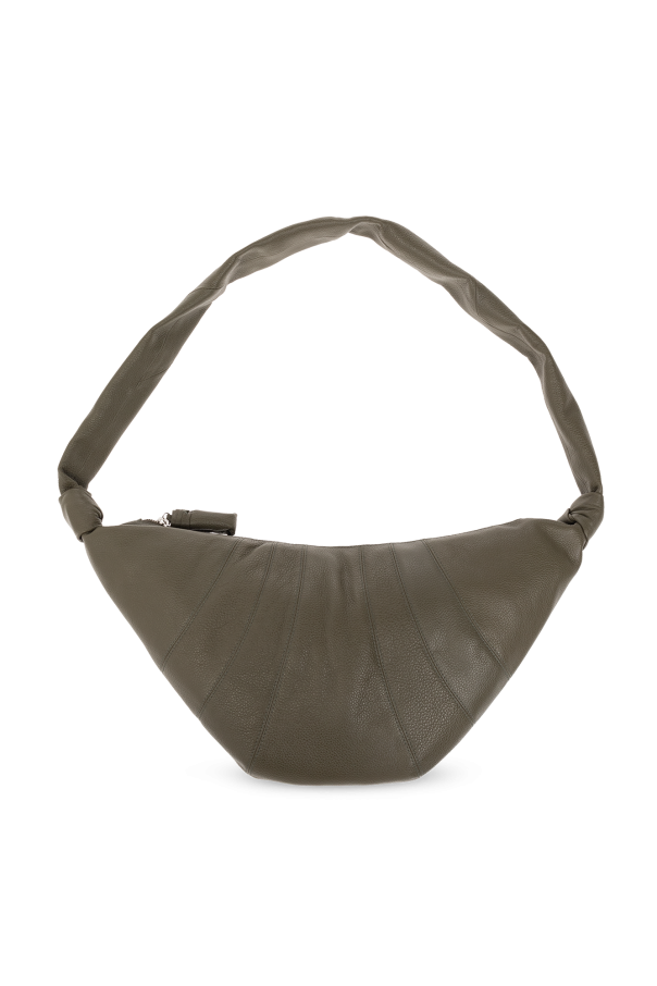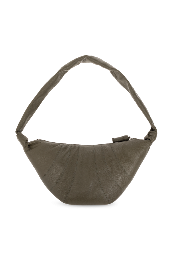 Dark green ‘Croissant Medium’ shoulder bag from Lemaire. Made of leather, this model is complete with a zip with a decorative charm, wide shoulder strap with stitching and knots, silver-tone metal hardware and one internal compartment with one slip pocket and leather logo-engraved details.
