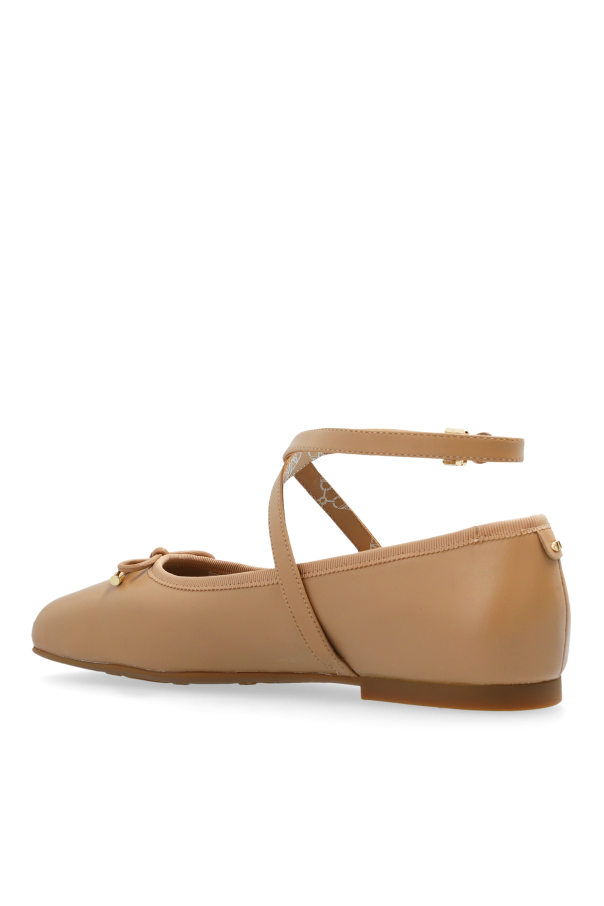 Introducing the exquisite Collette Ballet Flats from the renowned American brand, Michael Michael Kors. These flats embody a masterful blend of sophistication and comfort, making them an unrivaled choice for both everyday wear and more formal occasions. Crafted from premium leather, the Collette Ballet Flats feature a classic, rounded silhouette with a closed toe, exuding timeless elegance. The minimalist design is accentuated by a subtle bow on the front, adorned with metallic tips, and an adjustable ankle strap with a gold buckle that crosses over the instep for a secure and stylish fit. The interior is lined with a logo-patterned insole, adding a touch of prestige. The flats are presented in a versatile beige hue, ensuring they complement a variety of ensembles. The flat rubber sole provides exceptional comfort, making these shoes a go-to for any occasion. Why Choose This Product? Luxurious Materials: Outer layer crafted from 100% leather, inner lining from quality fabric, and a durable rubber sole. Elegant Design: Subtle bow and gold buckle on the adjustable ankle strap. Versatile Color: Neutral beige suitable for numerous outfits. Comfort and Stability: Flat sole and secure ankle strap for all-day wear. Prestigious Brand: From the world-renowned Michael Michael Kors.