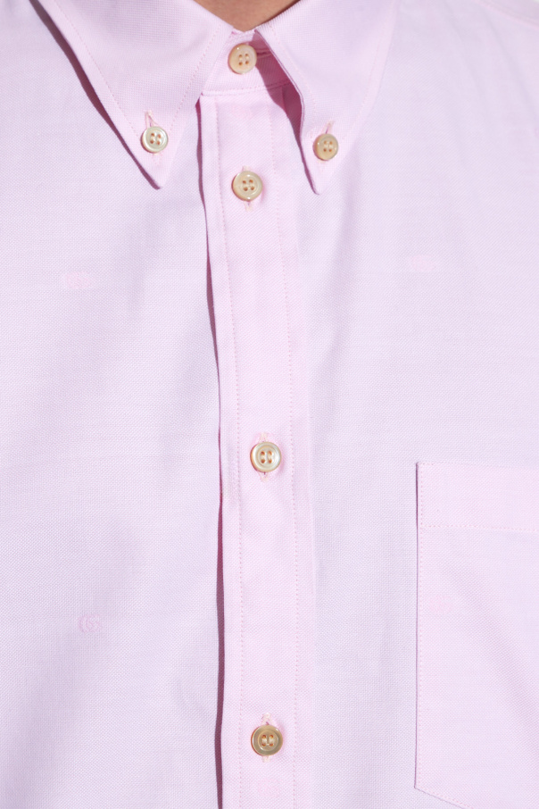 Pink shirt from Gucci. Made of cotton, this style is embellished with a ‘GG’ pattern and features button fastenings and long sleeves with button cuffs.