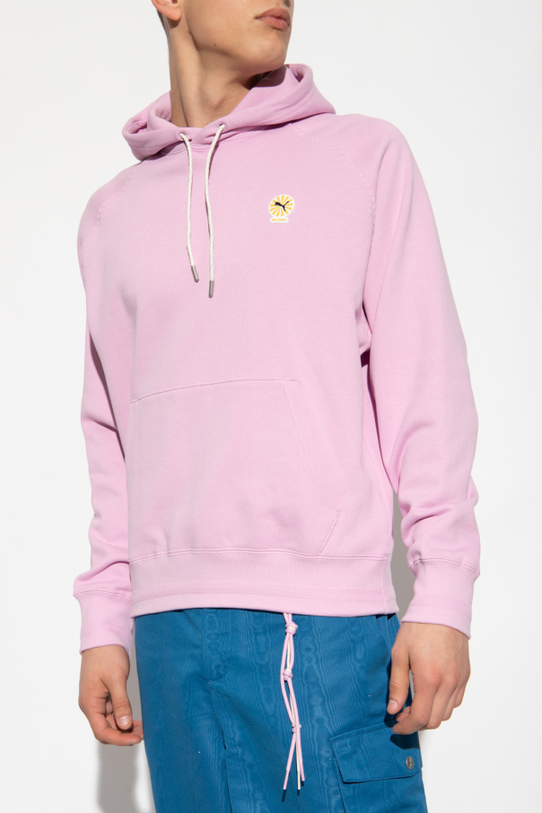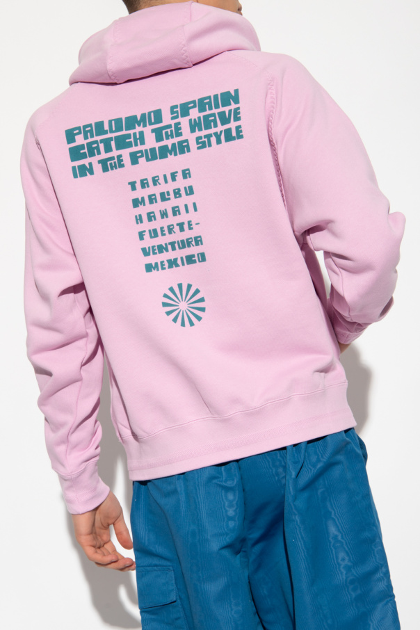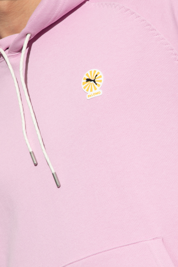 Pink sweatshirt with a drawcord-adjustable hood from Puma x Palomo. Crafted from cotton jersey, this style features a logo patch accompanied with a kangaroo pocket, long sleeves and ribbing on the bottom hem and cuffs.