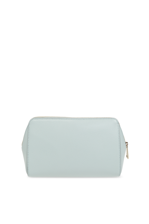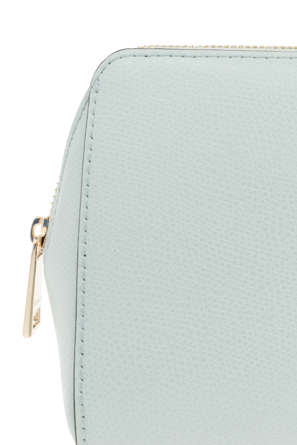 Introducing the ‘Camelia’ Cosmetic Pouch by Furla, a symphony of sophistication and functionality enveloped in a delicate light blue hue. Crafted with meticulous precision, this rectangular pouch, with its gently rounded edges, boasts a smooth texture that whispers luxury. At the forefront, a gold logo emblem stands as a testament to the distinguished Furla brand, seamlessly integrating with the pouch’s exquisite aesthetic. The allure of ‘Camelia’ is further enhanced by its golden metallic zipper, ensuring secure and stylish storage. Upon unzipping, one is greeted by a contrasting black interior that not only protects your essentials but also features an additional slip pocket for organized convenience. The interior, adorned with the brand\'s signature logo, complements the outer elegance flawlessly. Made from 100% genuine leather with an interior crafted from premium material, this cosmetic pouch exemplifies the high-quality standards synonymous with luxury fashion labels. The even and precise stitching further confirms the artisanal care and attention to detail that went into its creation. Why Purchase the ‘Camelia’ Cosmetic Pouch? Exquisite Craftsmanship: Precision stitching and high-quality materials for lasting durability. Iconic Branding: Prominent gold Furla logo and interior branding for an added touch of luxury. Functional Elegance: A gold metallic zipper opens to reveal a practical yet sophisticated black interior with an additional pocket. Versatile Style: The light blue hue and sleek design make it a perfect accessory for any occasion.