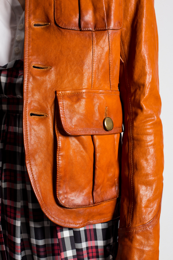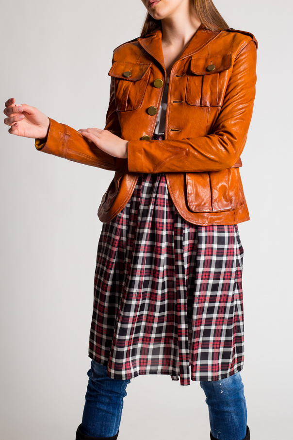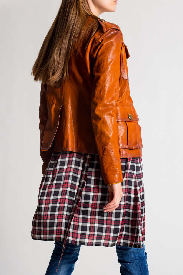 Brown jacket from Dsquared2. Crafted from leather, this garment features a button fastening, epaulettes on the shoulders, four buttoned flap pockets, long sleeves and a single rear vent.