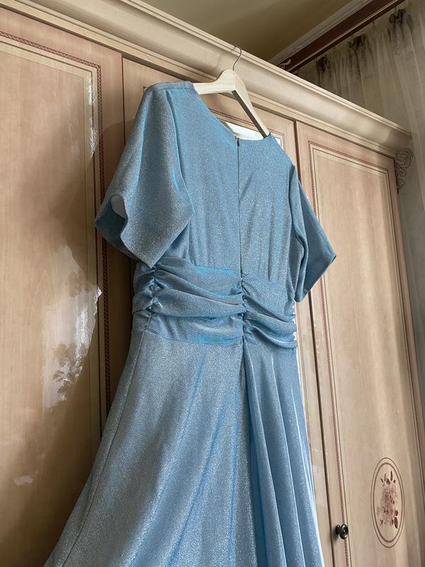 Состояние новой, после химчистки, одевалось один раз. С подкладкой, приятная к телу, очень красиво переливается. Благодаря драпировке скрывает любые недостатки фигуры. Скрытый замочек по спине. Платье доработано с рукавами.