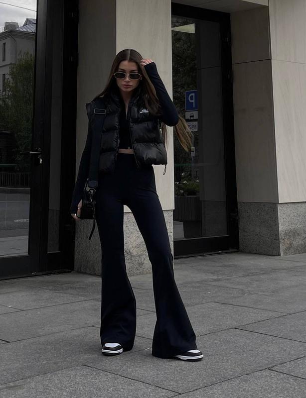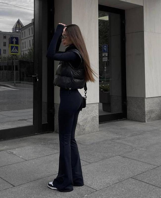 ▪️Цвет - черныйКлассные обтягивающие брюки, которые круто подчеркнут твои формы 😍 красиво облегают талию, снизу широкие. Супер - трендова модель